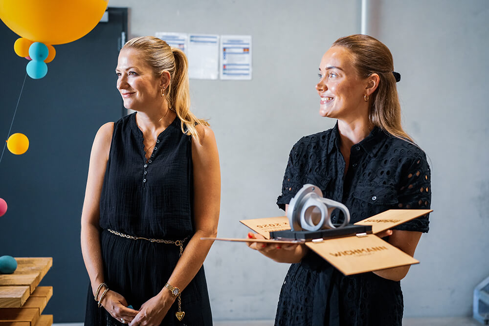For us, the 2000th frame drive shaft is not just a number – it represents many years of trust, cooperation, and joint development. Back then, the 1000th drive shaft was handed over by Horst Wichmann in Austria. Now Kristina Wichmann-Raschdorf has presented the 2000th drive shaft at our new location in Lotte – a moment that also has special significance in the context of generational change.